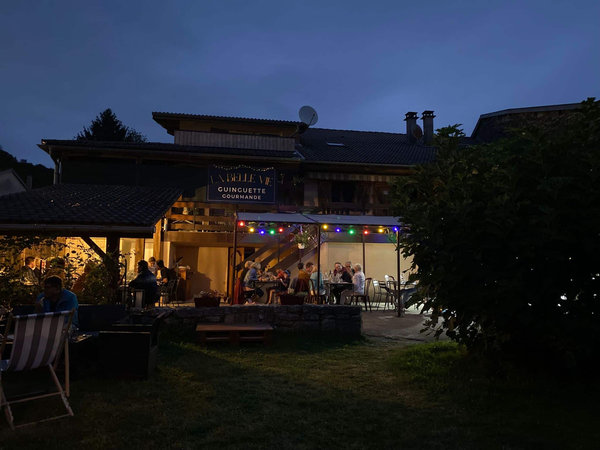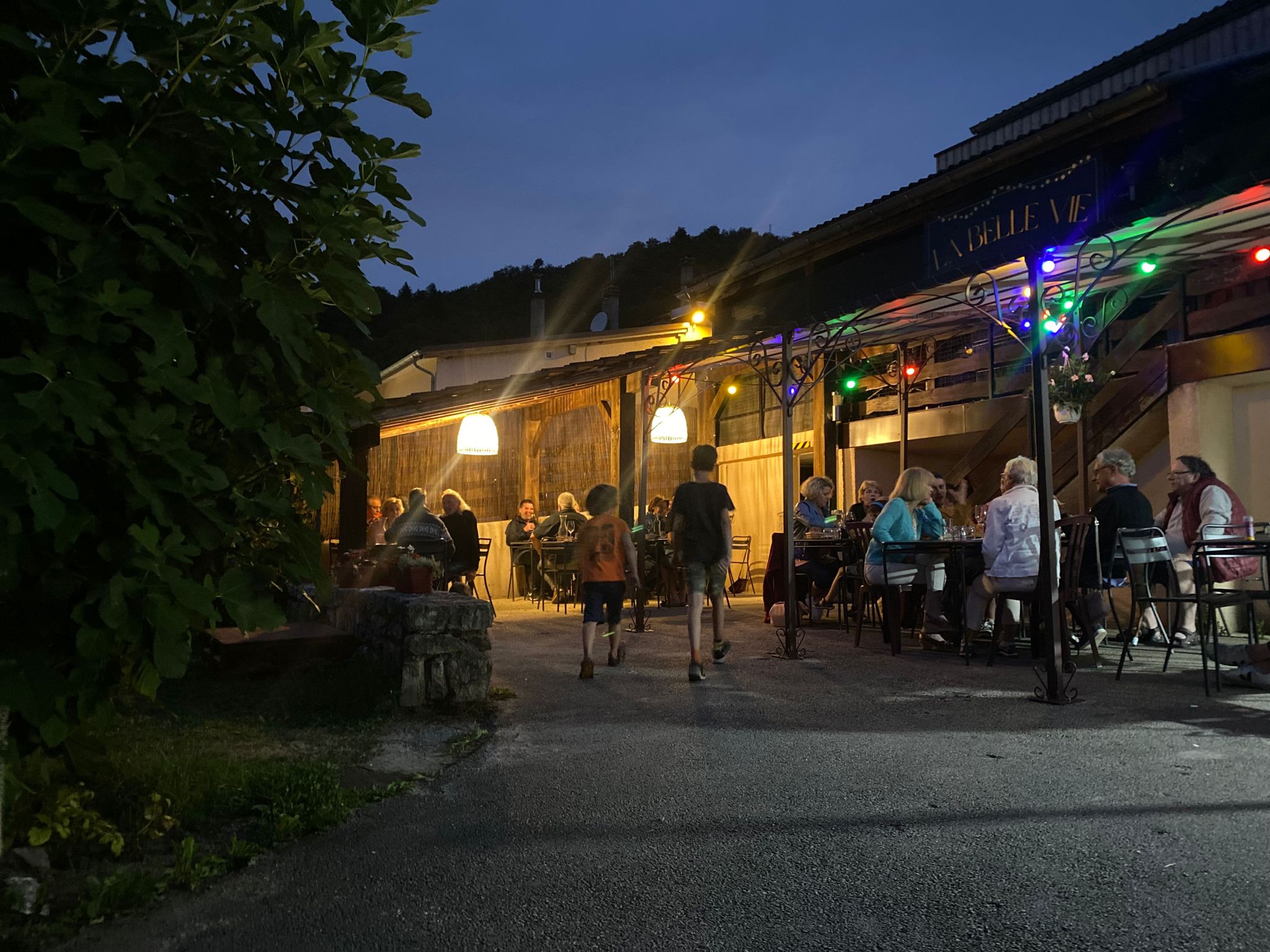 Le restaurant guinguette La Belle Vie vous accueille en extérieur, dans un cadre verdoyant, à proximité de la rivière d'Ain avec une très belle vue sur la Petite Montagne. Cuisine maison, produits de qualité. Fruits de mer à la plancha, viande fumée, salades fraîcheur, frites fraiches. Esprit familial et convivial. Aire de jeux pour les enfants à proximité et location de canoë et paddle à 100m. Parking gratuit.